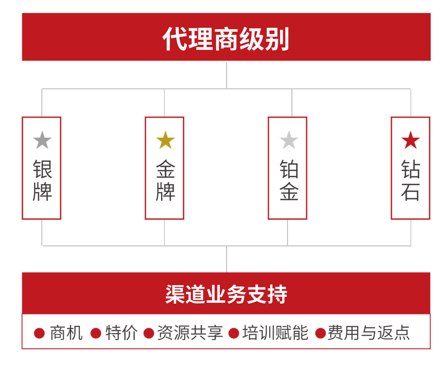 ◆ 每年(nián)對(duì)上(shàng)一(yī)年(nián)度全國(guó)排名前三的(de)簽約代理(lǐ)商進行(xíng)獎勵。